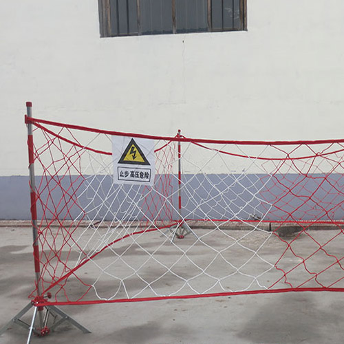 安全圍網又稱封閉式安全圍欄,主要用于發電廠,變電站的電氣設備檢修、電氣實驗、配電檢修等。整套圍欄由尼龍網、支撐桿和支座組成。結構特點是尼龍網用耐老化的優質尼龍繩織成,支撐桿用堅硬質輕的玻璃鋼管制成,上面配有掛鉤,可以牢固張掛尼龍網,使之不被掀起脫離,為了滿足不同工作地面的需求,我們設計了鑄鐵式安全圍欄底座,鐵叉式安全圍欄底座和便攜式安全圍欄底座(傘式安全圍欄底座)三種支座,供用戶選用。其中鑄鐵式安全圍欄底座分6斤、8斤、10斤三種型號。
